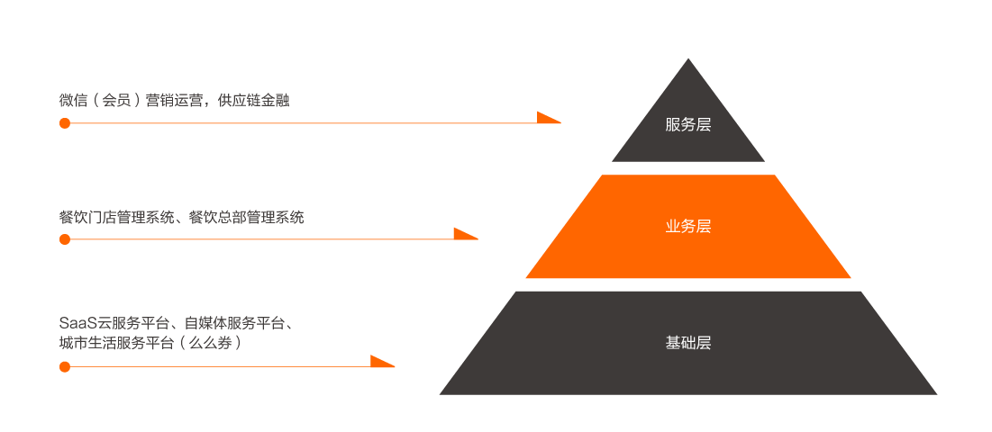平臺提供餐飲企業運營管理所需要的全案信息化支撐系統,以業務層獲取的基礎數據,為餐飲企業提供專業化的運營服務。